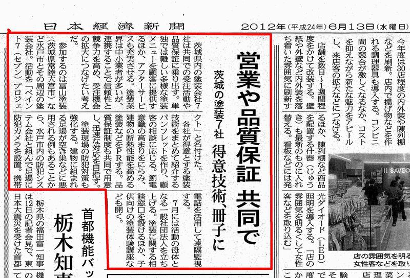 日本住宅塗装協会メディア紹介実績◇2012年6月14日 茨城新聞 Facebook当協会の設立時に、新聞各社に紹介されました。 その一部をご紹介致します。◇2012年6月14日 茨城新聞◇2012年6月13日 日本経済新聞◇2012年9月22日 日本経済新聞◇2017年12月23日 朝日新聞 Facebook