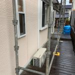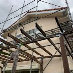 まずは、外壁の洗浄を前にして足場を架設し着工前検査を実施です。