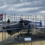 その前に、F-4EJ戦闘機はお披露目イベントまでの期間、しばしシートで目隠しをさせて頂きます。