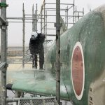 季節外れの寒さの中での洗浄作業でしたが、徐々に汚れが落ちてキレイな姿になって行くRF-4EJの機体を見ると、