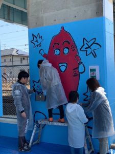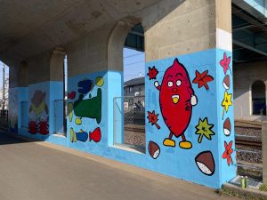 茨城県東海村の名産「さつまいも」のマスコットキャラクター「イモゾー」が中心の新しい壁画になりました!